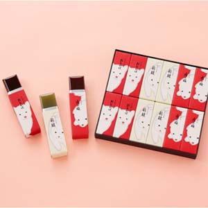 干支「戌」をモチーフにしたかわいらしい意匠の小形羊羹3種の詰め合わせです。