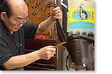 there, I do not need to worry about our jobs ending, but I do need to worry that materials are harder to find. The prices are getting higher and supplies are increasingly uncertain from year to year, especially human hair, which depends on imports. An alternate material is artificial nylon hair, yet the japanese hair style is impossible with this since it melts in the heat. Though it is the best to make japanese hair style with japanese hair, it is a difficult situation.