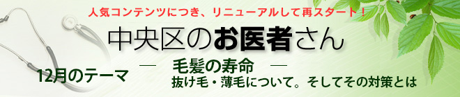 ホームドクターとして内科医の立場から現場では、いくつかの提案やアドバイスをしております。ひとくちに脱毛と言いましても原因は様々ですので、詳細な問診が肝要です。