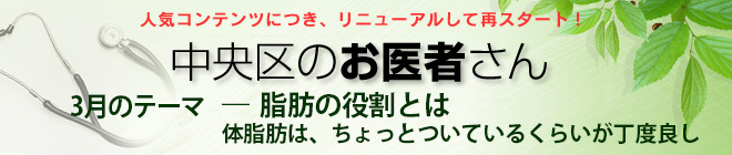 体脂肪、という言葉は若者から中高年の方まで皆さんから目の敵にされるものですが、身体の脂肪というのは体のサビを止める、すなわち「抗酸化作用」もあり、人の身体にはなくてはならないもので、大切な役割を持っています。脂肪はもともと動物が自分の体を守るためにありました。厳しい自然の中で暮らしていた大昔は防寒対策であったり、クッションの役割で体を防御する役割も果たします。また、脂肪は様々な物質を分泌しています。満腹中枢を刺激するホルモンの「レプチン」や(レプチンは女性の子宮や卵巣の成熟に関わります)、動脈硬化を防ぐ「アディポネクチン」を分泌するのです。しかし、そのような脂肪の良い機能は(脂肪組織が)正常な状態な時に働くもので、肥満のような異常な状態では分泌されず、逆に他の悪玉物質を分泌するのです。