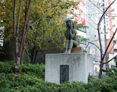 銀座通りと平行して流れていた三十間堀に架けられていた三原橋跡に置かれている彫刻。 |
