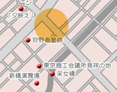 江戸幕府に仕えた奥絵師、狩野四家の木挽町狩野家の屋敷が旧木挽町のこの地に移ったときに画塾が開かれた。ここから多くの画家が生まれた。 |