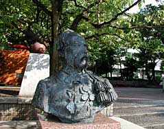 1823年(文政6年)に長崎に到着したオランダの商館医員フィリップ・フランツ・フォン・シーボルトは、その後江戸にやってきて日本橋の長崎屋に止宿し、江戸の蘭学者に面接指導し大きな影響を与えた。この地は江戸蘭学発祥の地である事と、シーボルトが長崎でもうけた娘が築地に産院を開業したことから、あかつき公園内に胸像が建てられた。 |
