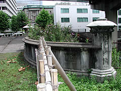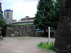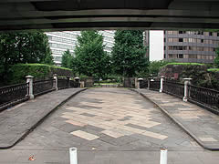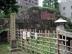 常盤橋の上流に古い石橋を発見! この橋は、常盤橋とは漢字違いの「旧常磐橋」。橋を渡ると、そこには大きな石垣がそびえ立っていました。この石垣、実は「史跡・常盤橋門跡」。常盤橋門は、江戸時代、江戸城外濠から奥州街道へと通じる出口で、浅草口とも呼ばれていました。現在の旧常磐橋は、石垣に使用されていた石を用いて、明治10年(1877年)に架け替えられたものだそうです。