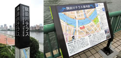 隅田川テラスは、隅田川とその周囲の景色を眺めながら、隅田川沿いを歩ける遊歩道。憩いの場として、また散歩やジョギングのコースとして、多くの人たちに親しまれています。