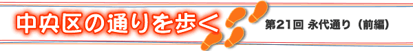第21回では、中央区内を通る永代通りについて、通り沿いの日本橋一、二丁目、日本橋兜町界隈などをご紹介します。