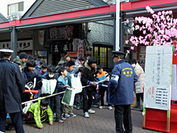 他の神社の豆まきに参加した経験がないので賑やかさは比較できないのだが、この節分会の豆まきは、楽しげな子供たちの笑い声にあふれ、西仲通り商店街が歓声で包み込まれる。