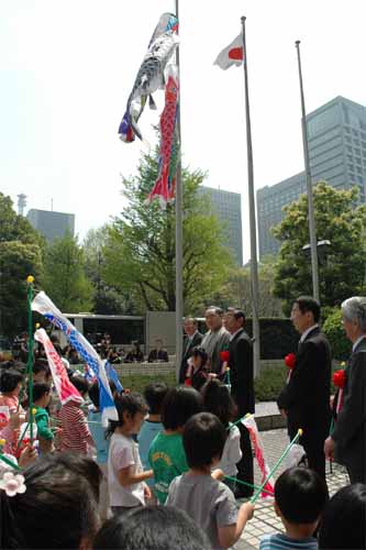 この記念すべき10万人目の区民になられた佃2丁目の柴田さんのご家族に、本日4月5日に区民証と「お江戸日本橋」をデザインした楯を記念品としてお贈りしました。