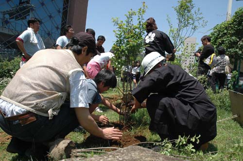 都心に野鳥や昆虫を呼び戻そうと中央区相撲子供会の寄附により、スポーツセンター東側の隅田川沿いにあるビオトープ約700平方メートルに65本の木が植樹されました。