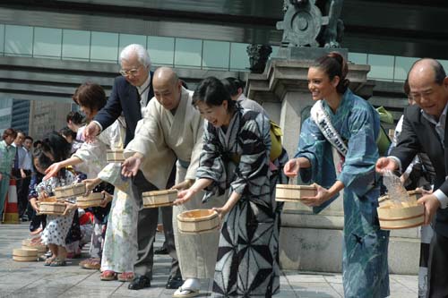 屋形船は日本橋四の部連合町会と災害時における援助協定を結んでいる神田川屋形船振興会の中央区の2つの船宿(鈴木屋-中央区東日本橋2-27-12 3666-7605(浅草橋際)・小松屋-中央区東日本橋2-27-22(柳橋際) 3851-2780)から各1艘が参加