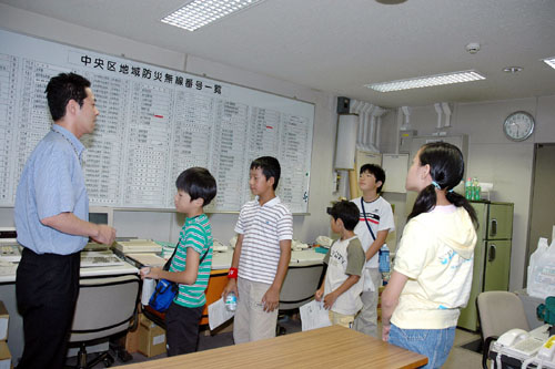 中央区では、子どもと親とのふれあう機会を充実させ、子どもの多様な体験活動の一助とするため、中央区に勤務する職員の子どもが自分の親が働いている「職場」及び「中央区」を実際に見てもらう「子どもの職場見学会」を夏休みを利用して実施しました。