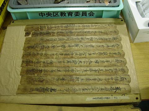このたび、中央区文化財保護審議会への諮問・答申、所有者の同意などの手続きを経て、平成19年4月1日付けで中央区民文化財として「八丁堀三丁目(第二次)遺跡内 朗惺寺跡出土 こけら経」、「平野活版製造所(平野富二)製造の活版印刷機」の2件を新たに登録することが教育委員会で決定されました。