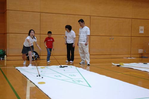 今日は連休とあって、家族連れが多く、1,000人を超える参加者がありました。会場では、汗を流しながら体力測定に挑戦している家族や、トランポリンやニュースポーツに挑戦する子供たちを、お父さんがビデオで追う姿なども見受けられました。アーチェリー、ゴルフ体験など日常あまり体験できないスポーツには、順番待ちの列もでき、また、子供体操では、就学前の子どもの熱気と歓声で終日賑わっていました。