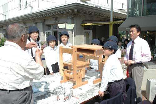 中央区立城東小学校の5・6年生が、日本橋高島屋の屋上で机や椅子を組み立てました。これは、「総合的な学習の時間」というカリキュラムとして行われたもので、環境問題というテーマの一環として取り上げられました。