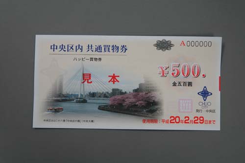 詳細は中央区ホームページ内「中央区内共通買物券(ハッピー買物券)3億3千万円分を6月17日(日曜日)に販売します!」(http://www.city.chuo.lg.jp/kurasi/sigoto/honjituhatubaityu/index.html)をご覧ください。