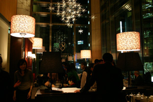 吹き抜けの高い天井から、雪形の美しいシャンデリアが光る
