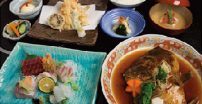 嘉永三(1850)年創業の銘店。先付「空蒸し」/向「刺身」/鉢「真鯛のかぶと煮」/台「金ぷら」/留「食事」/甘味「凍菓子」と多彩な品数が堪能できます。※ランチタイム限定
