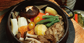 女性の健康を意識し、10種類以上の季節の食材が盛り込まれた釜飯は、一人前ずつお米から炊き上げています。毎日届く、島根県益田市の漁港から獲れたての魚介類も魅力的。