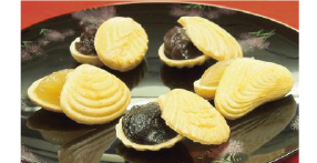 良質の国産小麦を2種類ブレンドしたやわらかな食感。牛乳の代わりに豆乳を使用した生地に、榮太樓特製の粒餡を使用。
