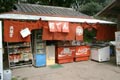 門を入るとすぐ右にあるのは、管理所です。入園券の販売の他、荷物の預かりや、車椅子(2台有)の貸し出し等のサービスをしています。また、庭園に咲くボタンやサクラ等の絵葉書(1枚70円)の販売もあります。