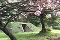 水上バス発着所を出て右方向に進むとすぐに、シラカガ、ブンゴウメ等約70本の梅林が続きます。他の大名庭園に準じて、飢饉対策として梅の実の活用も兼ね設けられ、庭園全体では140本あります。見頃を迎える1月下旬から3月中旬頃は、独特の梅の香が辺りを包み、花が終わり暖かな陽気を迎える4月中旬以降には、鈴生りの実を間近に見ることができます。その時期、梅林の足元には、オオイヌノフグリ、アマナ等の可憐な野草、また、白い冠毛の関東タンポポの姿もそろそろ見られます。