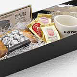 厳選の紅茶とパウンドケーキ、そして表参道の大人気カフェ、ロータスのティーカップとポストカードがセットになったお洒落な日本橋高島屋限定ギフトBOXです。