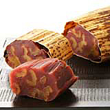 切っても切ってもくるみ。竹皮に包み蒸し上げた珍しいくるみの蒸羊かん。