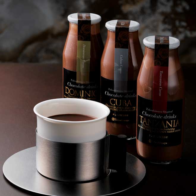 〔タカシマヤオリジナル〕産地別のカカオ豆を使用したチョコレートドリンク3種類をセットに。濃厚で力強い香りのキューバ産、希少価値が高くフルーティーな味わいのタンザニア産、スパイシーで香り豊かなドミニカ産。それぞれの香りと味の違いを飲み比べてお楽しみいただけます。