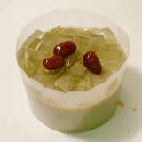 「豆のご」とは豆乳のこと。なめらかな抹茶風味豆乳プリンに、ツルンとした寒天の組み合わせ。