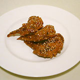 油で揚げたジューシーな鳥の手羽先を甘辛いたれでからめました。とうがらしが効いたピリ辛風味はビールのお供にぴったり。