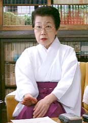 神社という所は、お琴をひいたり、習字のお稽古をしたりして、のんびりとした優雅な時間が過ごせると思っていたのですが、一歩入ると、忙しさを極めていました。毎朝3時には起き、お宮の近くの社宅から参り、潔斎(けっさい)をしたのち掃除をし、神様にお供えものをして一日が始まります。自分のことを考える余裕がないくらい、神様へのご奉仕で一日が過ぎて行きました。 |