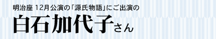 白石加代子の「源氏物語」は、光源氏をめぐる女人群像を一人一人まとめあげて再構成し、一晩のエンターテイメントになっています。瀬戸内寂聴のチャーミングな現代語訳を中心に、多くの<原文>をはさんで、古典日本語の美しさを満喫していただきます。注釈などを”語り”の中に織り込んで、聴くだけですべてがわかり、難解なところがありません。さて、今回は「源氏物語」の白眉というべき、「若菜上下」を中心に、40歳という男盛りを迎えた源氏の絢爛豪華な物語が展開します。