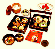 本日は、和食の醍醐味が凝縮された季節感溢れる、予約制のランチ「旬彩弁当(4000円)」を頂きました。焼き物・煮物・揚げ物が、越前塗りの二段重ねの手提げのお重に、彩よく盛りつけられています。「なまことやまと芋のこのわたがけ」「蟹とくらげときゅうりの酢の物」「鶉の松風」「さいまき海老の酒蒸し」「にしんの昆布巻き」「とこぶしの大船煮」「よせ海老をはさんだ高野豆腐と筍、里芋の煮物」「厚焼き玉子」「鶏のやはた巻き」「茄子の鶏味噌田楽」等々。全てが主役になるような逸品ばかりで、どれから手をつけたらいいのか迷ってしまいました。特に、生芝海老と卵だけを使い、ふっくらとした味わいの「芝海老の揚げしんじょう」、良質の胡麻と吉野本葛、牛乳、生クリームで仕上げた、なめらかな舌触りの「胡麻豆腐」、肉厚の銀ダラを笹で包んだ香り豊かな「銀ダラの西京焼き」等が印象的でした。また、お造りの平目は常磐の天然物の寒平目というだけあって、甘みがあり歯ごたえが最高でした。合わせ味噌仕立てで、塩引きのぶりや季節の野菜で具沢山のお椀、野沢菜とちりめんじゃこのまぜご飯、水菓子の苺に至るまで、本当に美味しく頂きました。どれにも、細やかな気配りが隅々まで感じられる心暖まるお料理でした。 |