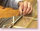 The process of making Hyougu takes anywhere from one months or longer. In some cases it could take over one year to complete a single hanging scroll. Shoji the second son explains in detail how each Hyougu takes to craft. First, the paintings or calligraphy are selected and drafted carefully. Next, the style of Kakejikuis is chosen. Then, the “kireji”, is artistically coordinated with the three different parts of cloths, “Ichimonji”, “Nakafuchi” and “Tenchi”. After that each cloth is cut and moistened with a ‘Hake’ style brush in order to prevent expansion or possible shrinking due to humidity. Next, the end of each attached cloth is held. These are called “Jiku,” “Hasso,” and “Futai”. The Jiku is then nailed and finally completed by attaching the scroll onto a string. The most important part of framing work is what is finally portrayed. The picture and scroll have a type of superior-subordinate relationship.For this reason, great effort is taken to ensure that each scroll is displayed under the best conditions possible.