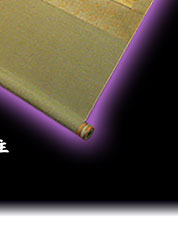 まずは絵や書などの作品そのものをよく吟味し、これから制作する掛軸の形式を決めた後、一文字(いちもんじ)・中回り(ちゅうまわり)・天地(てんち)の3種類の裂地の組み合わせを考えます。その後、裂地を裁断し、刷毛で塗らして「水引き」をします。これは、裂地が湿度によって伸び縮みするのを防ぐためです。裂地の形に合わせて和紙を裁断し、糊をつけて裂地に貼り、裂地と和紙が馴染むように刷毛でなぜ付けます。いわゆる「裂地の肌裏打ち」です。裂地と和紙では収縮率などが異なるので、お互いの特性を活かすことが大切です。次に、本紙の形を整えて裂地と継ぎ合わせる「切り継ぎ」を行います。左右の端の部分である「耳」を折るなど数行程の後、仕上げでは、掛け軸を巻く際の芯となる「軸」や最上部の半月型の木である「八双」(はっそう)を取り付け、風帯(ふうたい)を垂れ下げます。八双に金具を打ち、鈕をつければ出来上がりです。表具でもっとも大切なのは、なかの絵や書を最大限に引き立てること。絵と掛け軸は「主と従」の関係ですから、あくまでも主が輝くよう気をつけています。