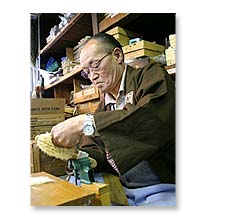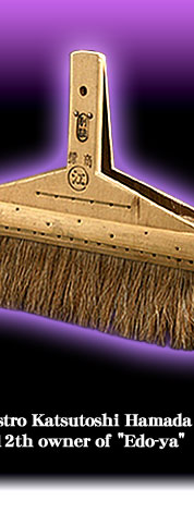 Nihonbashi Odenma-cho is derived from "Tenma", the houseback relay delivery by horses system in the Edo Era. There were a number of merchants in the town, cotton wholesalers in the Edo Era, and textile wholesalers after the World War II. Consequently, the town was prospered. We interviewed maestro. Katsutoshi Hamada was the 12th owner of "Edo-ya". Edo-ya was producing and selling hake and many brushes at Edo Shogunate in about 300 years in the town. |