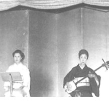 【写真:下 三升延師匠(右)と小唄の舞台】