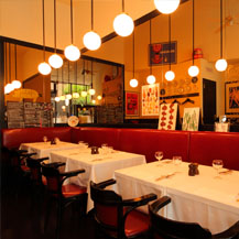 ボルドー色のソファとまあるいランプが並ぶ店内は、まるでフランス映画の中に迷い込んだかのよう!!