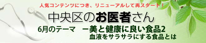 動脈硬化を防ぐ、あるいは進行させないための日常生活の工夫のひとつとして、食事内容の見直しは定番ですが、そのうちの中で「血液をサラサラにする食品を摂りましょう」という指導があります。「血液をサラサラに~」というのは、一度は皆さんも聞いたことのあるフレーズですね。例えばどのような食品を摂れば良いのでしょうか。ひと昔前に、東京女子医科大学附属成人医学センターの栗原毅先生(当時)が、血液をサラサラにする食品8品目を、覚えやすいように「オサカナスキヤネ」という語呂合わせで覚えましょう、と提唱されました。オは「お茶」、サは「魚」、カは「海藻」、ナは「納豆」、スは「酢」、キは「キノコ」、ヤは「野菜」、ネは「ネギ」。それぞれのはじめの文字を並べたものですが、とても覚えやすい語呂合わせだと感心しております。これらの食品は普通にスーパーなどで手に入るものばかりですので、まずはこの8品目をなるべく意識するように心掛けていけば良いと思います。