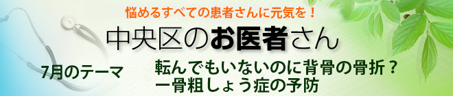 自治体が行っている女性対象の公的節目検診をできるだけ受け、とくに閉経後の女性、骨折の既往のある方は、整形外科医の定期的な検診をお勧めします。