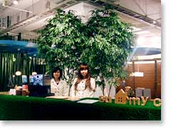 日本橋から日本橋高島屋に向かって歩いて行くと左側に、なにやら中にグリーンがたくさん見える緑色の建物があります。 おしゃれなお店かカフェのようですが、実は弊社が日本橋の皆様に提供する癒しのフリースペース「住まいクラブギャラリー」です。 ウッドチェアに腰掛けながら、おいしいコーヒーやお茶をお楽しみいただき、大迫力の大型プロジェクタースクリーンでの映像もご覧いただけます。 住友不動産の新築分譲マンションの資料がすべて揃い、各モデルルームに行かなくても気になるマンション情報をいち早くチェックすることもできるので、仕事やプライベートに忙しいという皆様にとてもおすすめです。