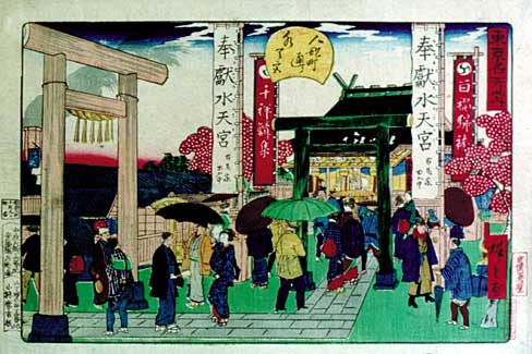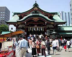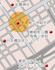 1818年(文政元年)に筑後久留米の水天宮(久留米市瀬下町)から江戸芝赤羽根の久留米藩有馬中務大輔の上屋敷内に勘定され、明治になって一時赤坂に移り、この地には明治5年に移転した。安産の神様として全国に有名。日本橋七福神「弁財天」が境内にある。 |