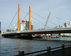 隅田川に架かる中央区と江東区をつなぐ橋。最初の架橋は1693年(元禄6年)、当時先に架かっていた両国橋が“大橋”と呼ばれていたことから、この橋の名が“新大橋”になったと言われている。現在の橋は1977年(昭和52年)の完成。 |