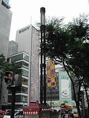 通り沿いのケヤキの下をよく見ると……、木を囲う板の中に「銀座」と書かれたプレートを発見。こんなところにも、銀座がありました。 |