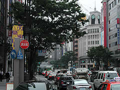 晴海通りは、千代田区有楽町1丁目から、中央区銀座、築地、勝どき、晴海を通り、江東区東雲2丁目まで続く通りです。通りの名前の由来は中央区晴海。晴海は、昭和6年に完成した埋め立て地で、当時は月島4号地と呼ばれていました。この4号地では、万国博覧会の開催や東京市庁舎の移転などが計画されていましたが、戦争の激化によりどちらも幻に。昭和30年代からは、東京国際貿易センターでモーターショーなど各種イベントが数多く開催され、東京を代表する展示会場として大いに賑わいました。