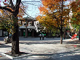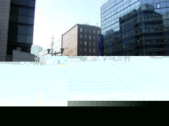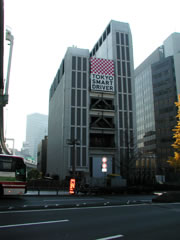 通りを歩き始めた直後、新常磐橋の近くに、以前どこかの通り沿いで見かけたような建物を発見!「これはひょっとして…、あれでは?」と見当を付けて建物に近寄ると、予想はずばり的中!建物は首都高速道路の常磐橋換気所でした。第8回で発見した鍛冶橋換気所は円柱、常磐橋換気所は四角。形の違いはあれど、外観がよく似ています。ぜひ見比べてください(鍛冶橋換気所を見る)。 |