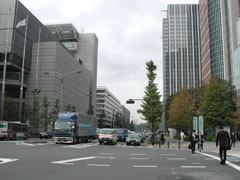 中央区内を通る鍛冶橋通りは、外堀通りと交差する鍛冶橋交差点から東へ、八重洲、京橋、八丁堀、新川を通り、永代橋西交差点まで続く通りです。鍛冶橋交差点の西側、千代田区方面へ進めば、馬場先門交差点で国道1号線と交差し、その先は二重橋前交差点で内堀通りと交差します。