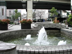 公園内にひっそりと佇む旧弾正橋のモニュメント