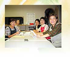 平成 6年から初めたこの会は、 12年目にはいります。サークルの主体は主婦の方たちで、現在の会員は 8名です。中央区でひとり暮らし高齢者食事サービス事業が昭和60年12月から開始され、当初はマンツーマンで配食サービスをやっていたそうです。平成7年から中央区社会福祉協議会の委託事業になり「だいこんの花」の方たちも協力員と共に配食サービスを行われ、今日まで続いているとのことでした。月から土曜日まで業者の方と、中央区全体で月に4000食も配食していらっしゃるのですから驚きです。お昼ごはんだけですが、登録会員は 300人。チケット制で 1食 400円分を 10食分まとめて購入されているそうです。