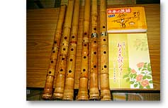 尺八は、今回は6本でしたが8本もあり、短いほうが高音で長いほうが低音であることを説明していただきました。三味線は、持ち運びが楽なように工夫された「三つ折れ」でした。